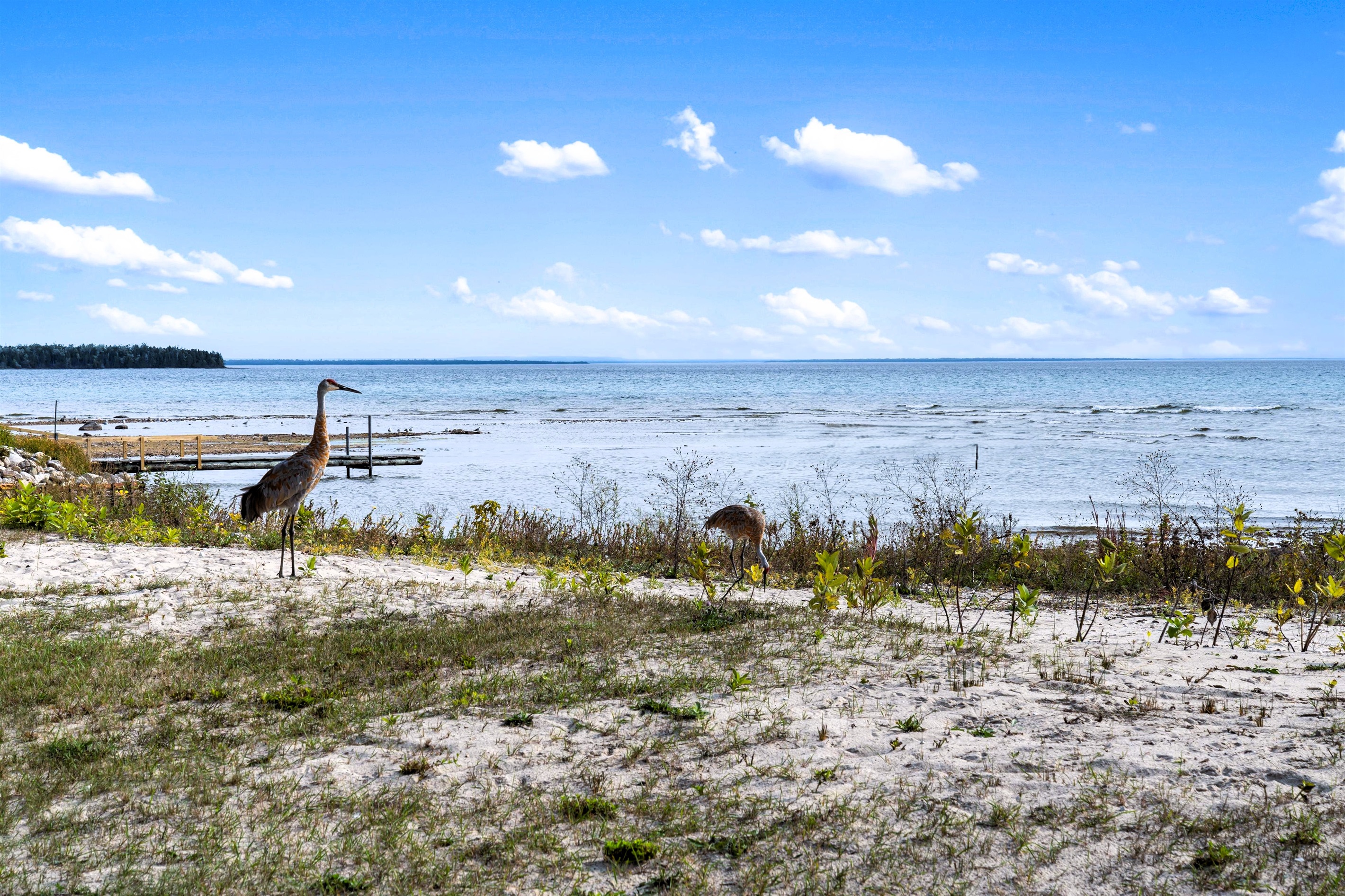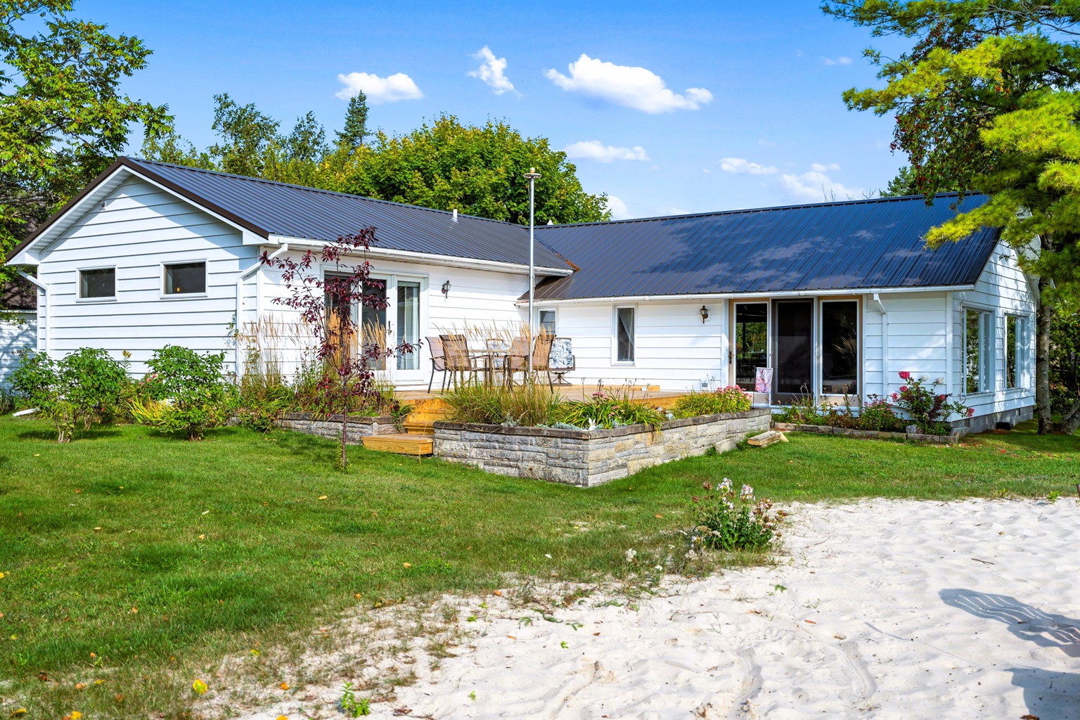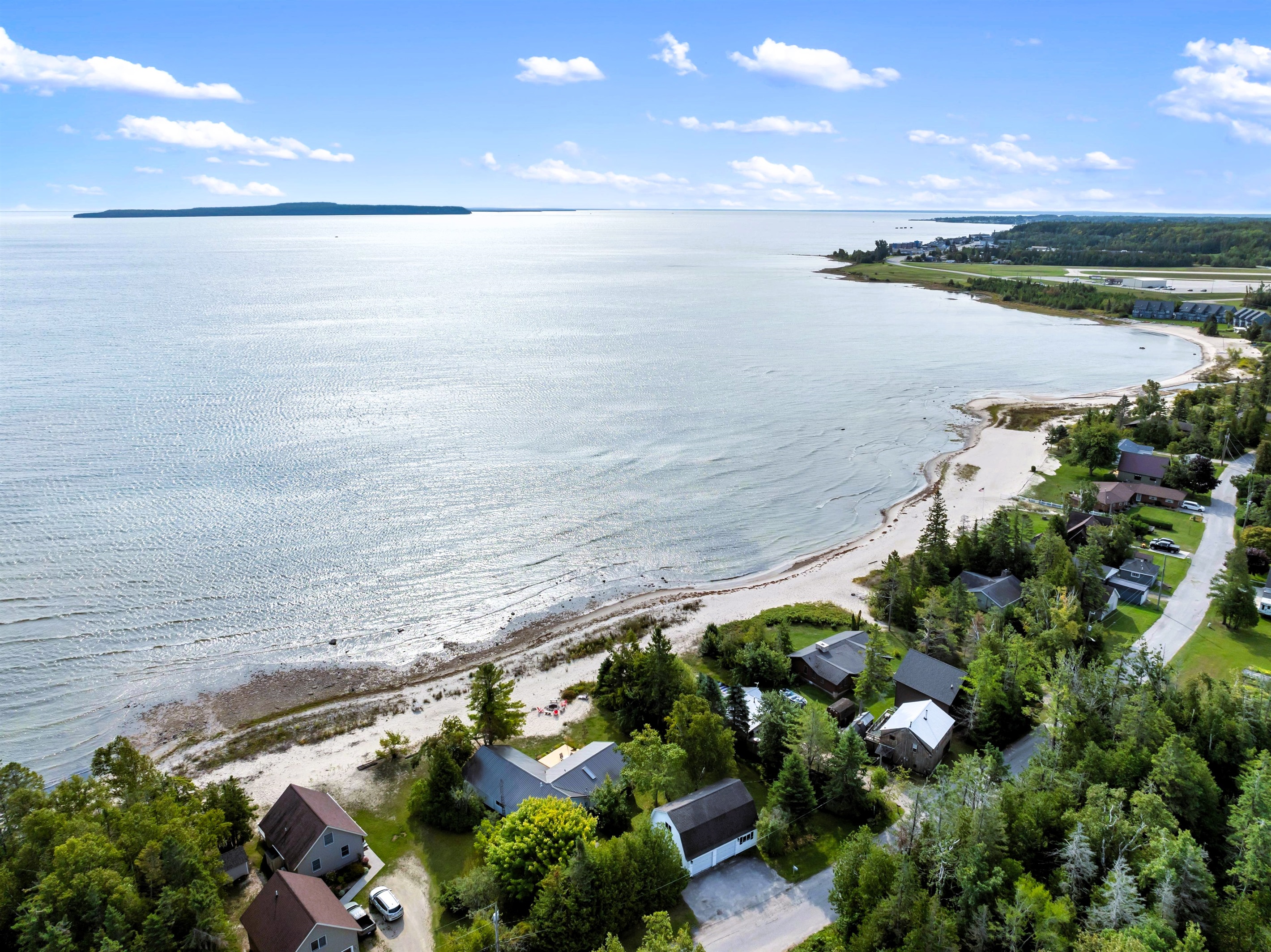 Year around ranch style family home directly on Lake Huron overlooking Mackinac Island. The master bedroom with full bathroom requires 4 steps, the rest of the home requires no steps