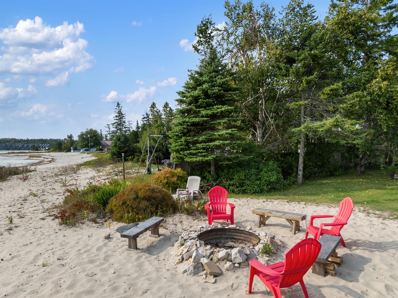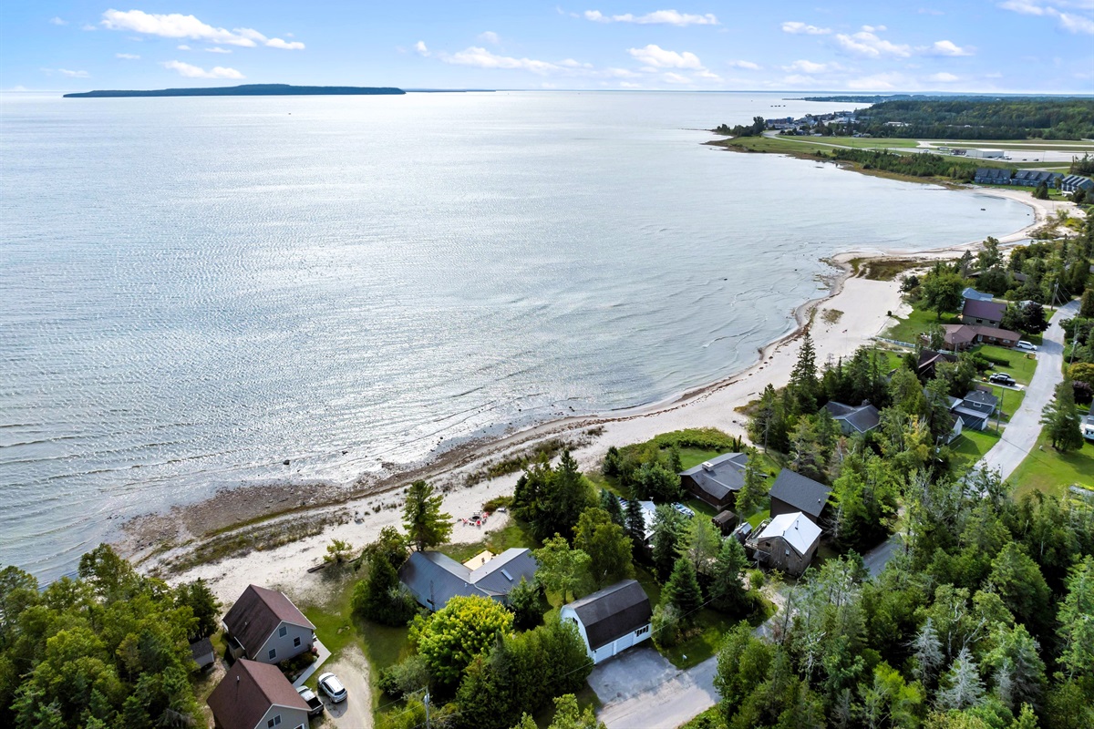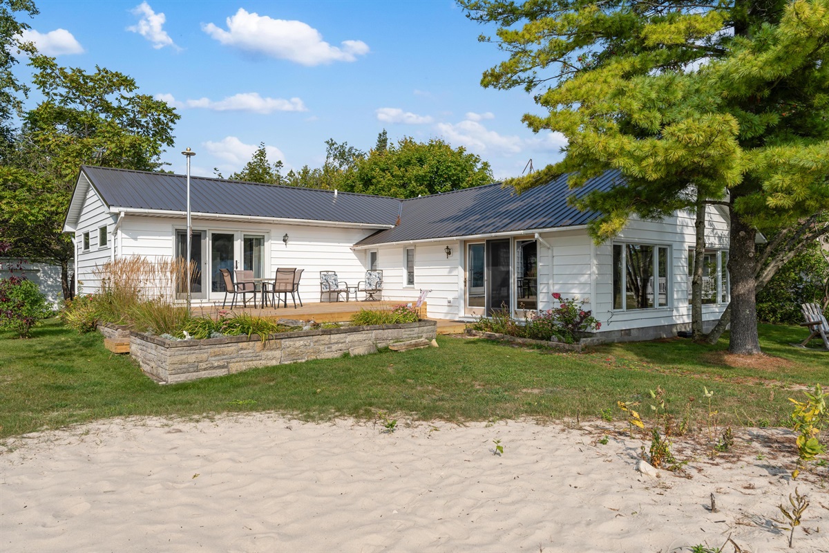 Year around ranch style family home directly on Lake Huron overlooking Mackinac Island. The master bedroom with full bathroom requires 4 steps, the rest of the home requires no steps
