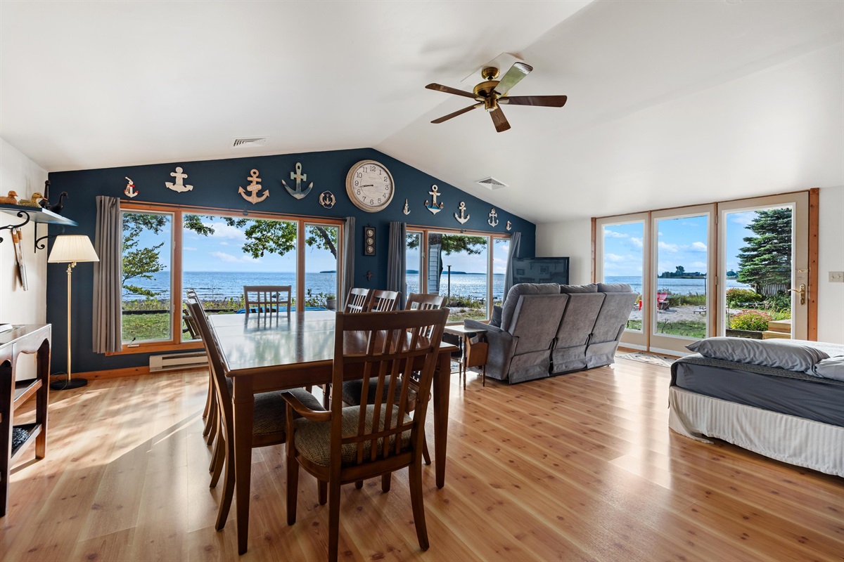 This waterfront home is located 2.3 miles to the ferries and 2 miles to Kewadin Casino. Both venues provide transportation to and from the cottage.